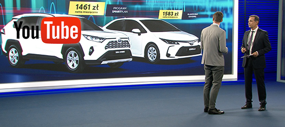 1 Kalkulacja Leasingu KINTO ONE wykonana przy następujących założeniach: okres umowy 36 miesięcy, opłata wstępna 10% ceny zakupu pojazdu. Łączny limit przebiegu do 60 000 kilometrów w trakcie trwania umowy. Rata nie obejmuje kosztów rejestracji pojazdu. w związku z korzystaniem z Leasingu KINTO ONE pobierane są opłaty przewidziane w Tabeli Opłat i Prowizji Toyota Leasing. Szczegóły Leasingu KINTO ONE i ostateczne warunki finansowania są dostępne u Dilerów Toyoty. Kalkulacja z dnia 4.11.2025 r. Kalkulacja warunków finansowych została przygotowana w oparciu o cenę pojazdu i aktualnie obowiązującej stopy procentowej. w przypadku zmiany ceny pojazdu (w wyniku zmiany kursu EURO) lub zmiany stóp procentowych kalkulacja może ulec zmianie. Wysokość raty miesięcznej w Leasingu KINTO ONE jest średnio o 50% niższa niż wysokość raty miesięcznej w Standard Leasingu oferowanym przez Toyota Leasing na okres 3–4 lat. Przyznanie leasingu jest uzależnione od pozytywnej oceny zdolności kredytowej potencjalnego leasingobiorcy przez Toyota Leasing. Niniejszy materiał nie stanowi oferty w rozumieniu Kodeksu cywilnego i ma charakter wyłącznie informacyjny.