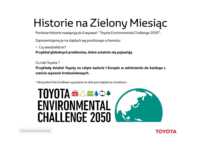 Kontynuujemy działania w ramach ogłoszonego 2 lata temu programu „Toyota Environmental Challenge 2050”.